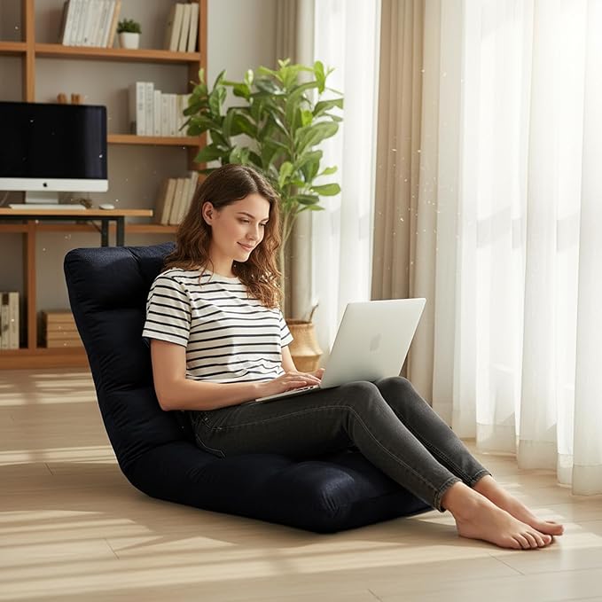 - Portable & No Assembly:No assembly required—just unbox and adjust to your preferred angle in seconds. Weighing only 12 lbs, this foldable floor chair is lightweight and easy to move between your living room, bedroom, dorm, or office.