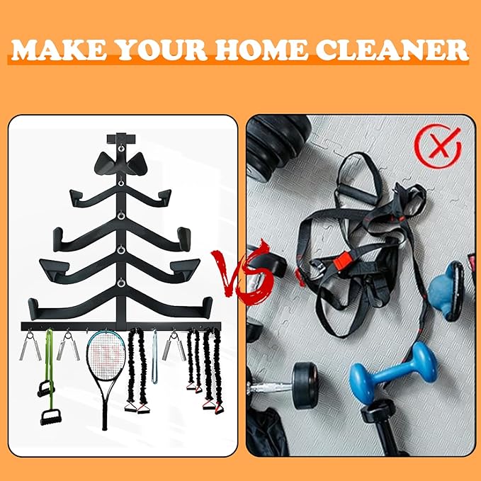 - 【Multiple Uses】This gym accessories storage rack is a true storage "all-rounder". It can properly organize various cable accessories and make messy cables neat and tidy. The LAT bar organizer is not only suitable for home and garage, but also for commercial gyms. And it is also suitable for magnetic grips, which can store resistance bands, jump ropes and many other fitness accessories and accessories, and it is very versatile.