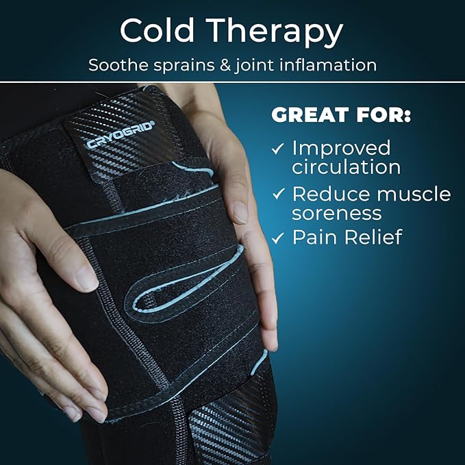- EFFECTIVE RELIEF FOR KNEE PAIN: Soothe knee pain and tension with this versatile ice wrap, suitable for acute and chronic pain, sprained or strained ligaments, inflammation, swelling, and post-injury or post-surgery recovery. The specially crafted shape provides full knee coverage, and Cryogrid technology ensures even cold therapy distribution.