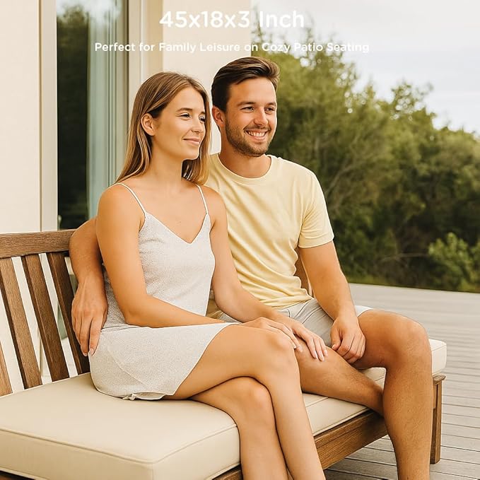 Codi Outdoor Bench Cushion 45 inch, Double Waterproof Patio Furniture Cushions Replacement for Swing, Porch, Couch, 45x18x3'', Beige