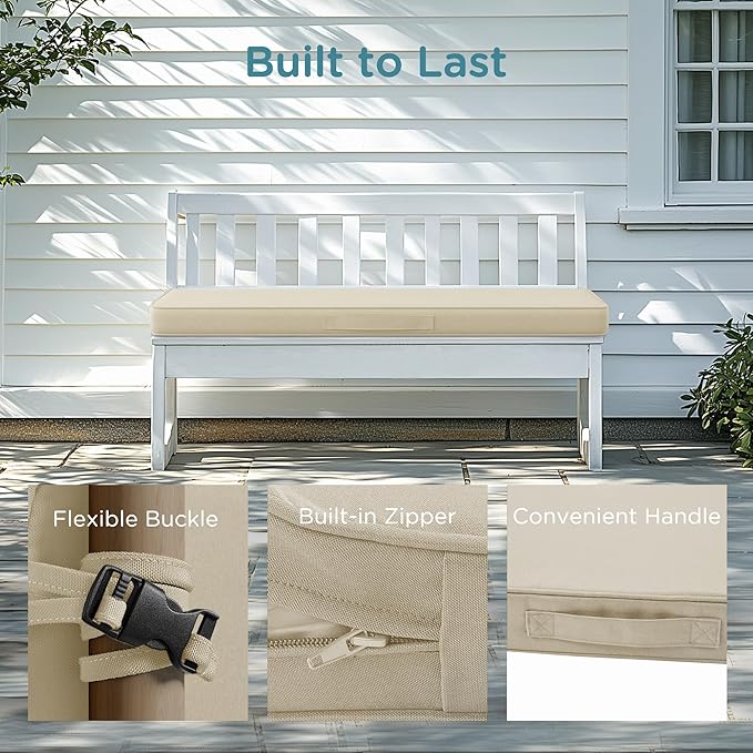 - Double-Layer Waterproof Protection - Made with a 600D solid waterproof Oxford fabric outer layer and an additional waterproof coating on the surface, this bench cushion for outdoor furniture is designed to keep your seating area dry and comfortable, even in rainy weather.