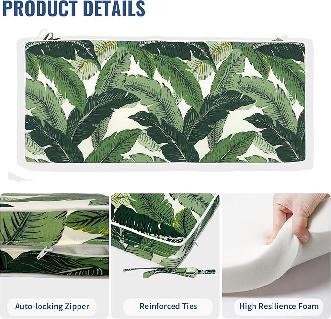 Outdoor Bench Cushion, Patio Furniture Cushion 45 x 18 x 3 Inch, Water Resistant Garden Sofa Swing Pad Settee Loveseat Couch Replacement Cushion, 1 Pack, Swaying Palms Green