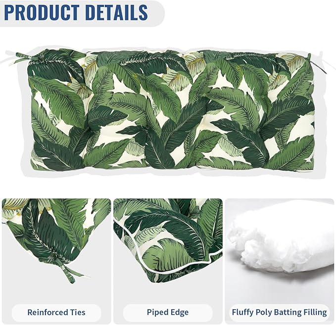 Tufted Bench Cushion for Outdoor Furniture, Patio Swing Cushion 44 x 19 x 5 Inch, Overstuffed Outdoor Chair Cushion for Garden Loveseat Lounge Storage, 1 Pack, Swaying Palms Green