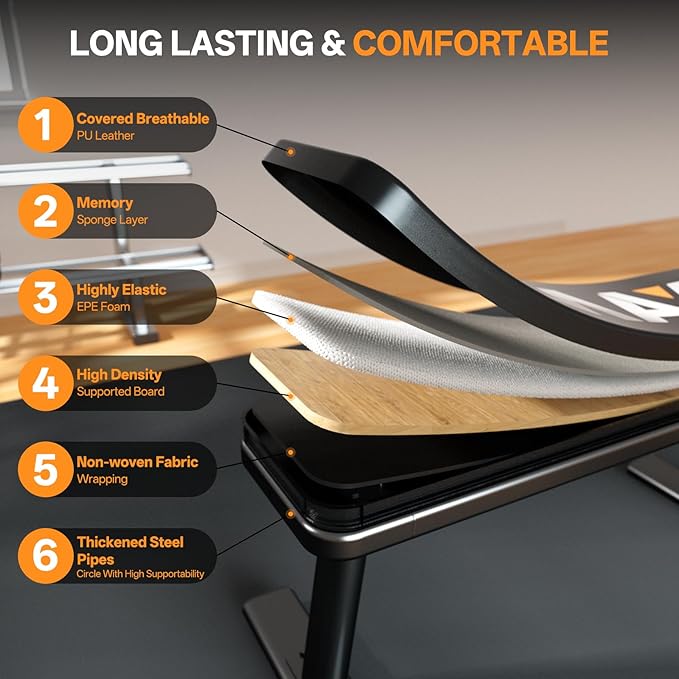 - 【Enhanced Comfort】The YAMO flat weight bench is built for comfort and performance. Our compact weight bench is a 2.4-inch thick cushion, crafted with a 6-layer trapezoidal structure for optimal support. The workout bench boasts upgraded high-density foam padding, ensuring the utmost comfort during your workout sessions, it provides the perfect support for your workouts.