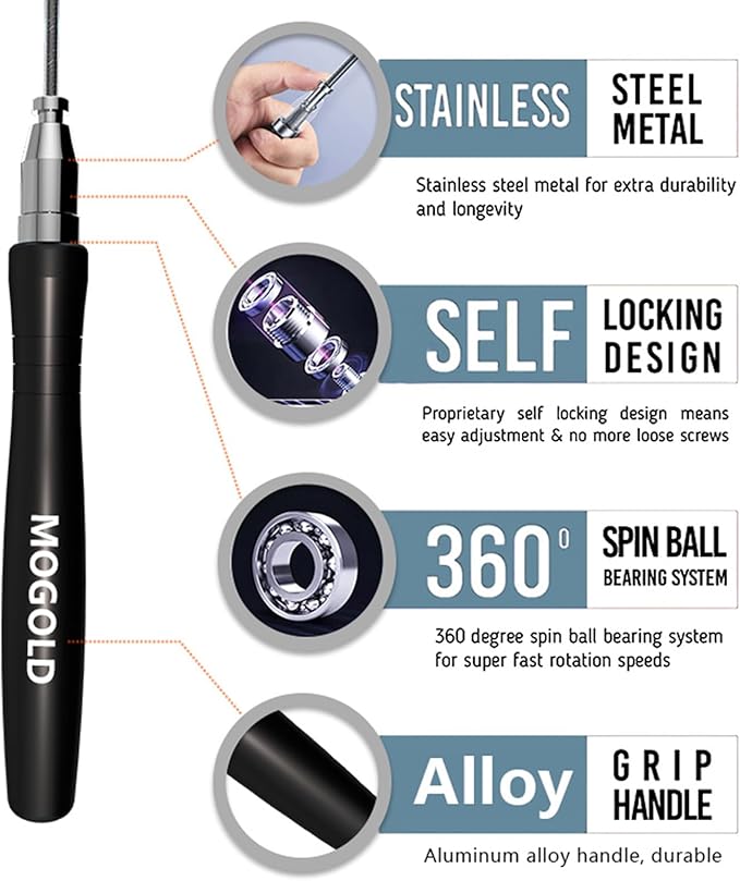 - 【Super Durable Rope】 Built to Last - The T08 comes with a 9’10” length adjustable Modified PVC coated speed rope cable, it will survive heavy workout even at harsh conditions!