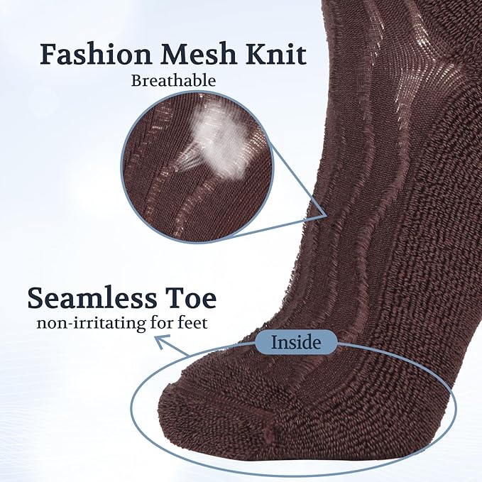- 1.【Non-binding & No-irritating】: The top is not tight or binding at all. Slips on easily over ankles but does not slide down, no more marks on legs from socks. Seamless toe enhances your everyday comfort and keeps your toes and blood circulation in top shape. The cushioned sole brings super comfort and touch for diabetic patients’ sensitive feet.