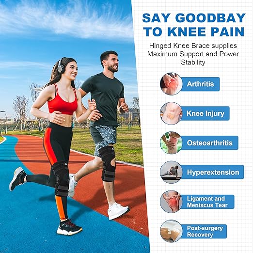 - 【KNEE BRACES FOR KNEE PAIN】- Our hinged knee brace with side stabilizers is a good choice of pain relief, joint support, injury protect
