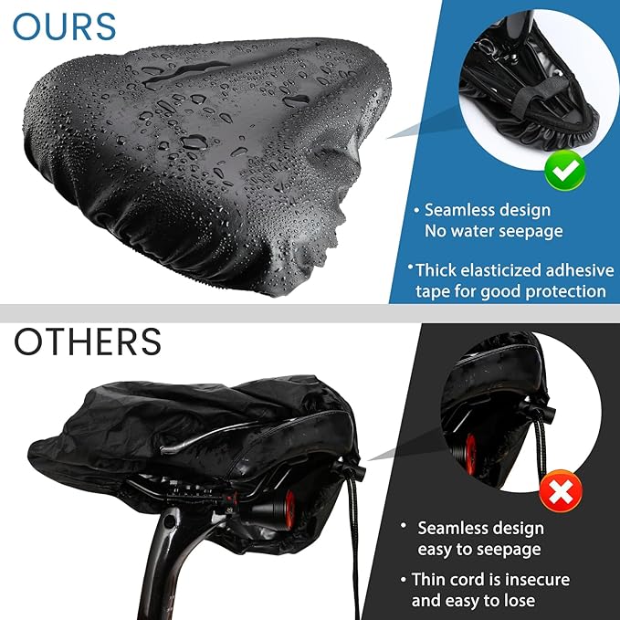 - Upgraded Design: With Velcro and seamless design, the saddle cover is more securely fastened against rain, dust, UV rays and damage, providing excellent bike seat protection.