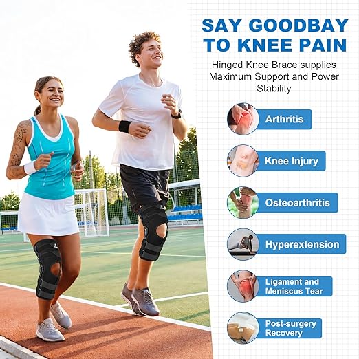 - 【KNEE BRACES FOR KNEE PAIN】- Our hinged knee brace with side stabilizers is a good choice of pain relief, joint support, injury protect