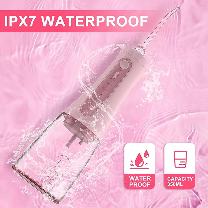 - 【Smart & Efficient Water Tank Design】Immerse yourself in hassle-free flossing with our Water Dental Flosser's 350ml detachable water tank. Clean your entire mouth without interruption – a single fill lasts up to 120 seconds. The removable tank design simplifies cleaning, while the IPX7 waterproof feature prevents leaks, making it perfect for bathroom showers.