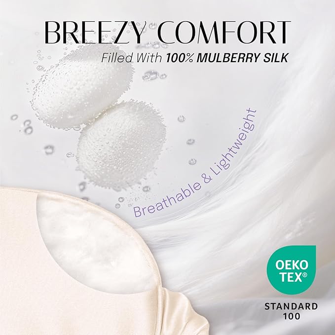- MADE OF TOP MATERIAL - Not only both sides are made of 100% top quality 19 momme mulberry silk, also the filling is of 100% silk. Only super-soft, super-smooth pure silk offers the breathable, cool relaxation of the soothing masks found at the world’s premier spas