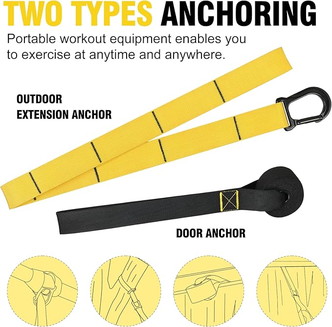 - 【Ultra-sturdy And Durable Exercise Straps】Each attachment of our resistance bands trainer system is carefully constructed and in good quality, heavy-duty materials and fourfold sewing tech keep every part secure, reducing any chance of breakage or slip-offs. Can max withstand up to 500 pounds of bodyweight and over 1000 pounds of resistance.