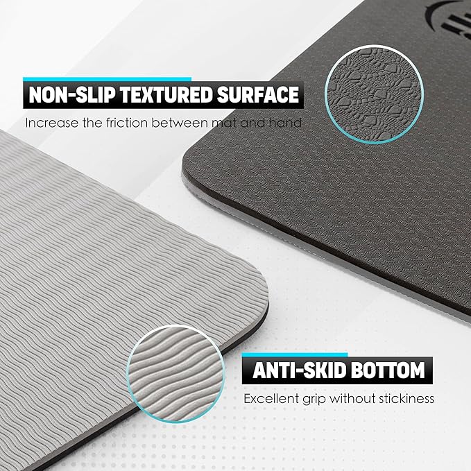 - Upgraded TPE Material: Crafted from premium TPE material, this big home gym mat is free from phthalates and has no unpleasant smell. Compared to NBR and PVC mat, TPE has a nice density. It provides ample cushioning without excessive sinking, aiding in the maintenance of balance during your practice.