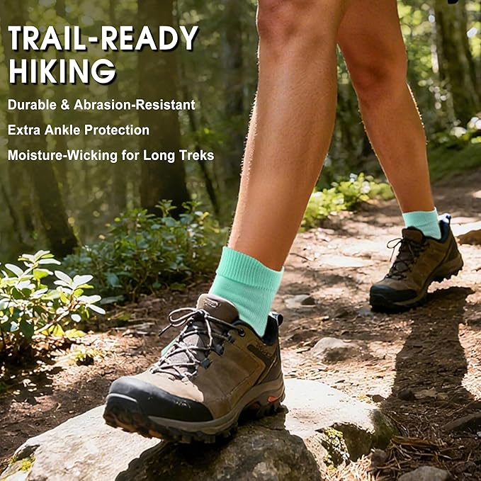 • Trail-Ready Durability : Built to conquer rugged terrain, these socks are ideal for hiking adventures, mountain trails, and extended camping trips. Crafted with durable, abrasion-resistant materials, they feature an enhanced heel tab to minimize wear and tear and mesh pores for optimal breathability. Designed for outdoor explorers and nature enthusiasts who demand both comfort and protection.