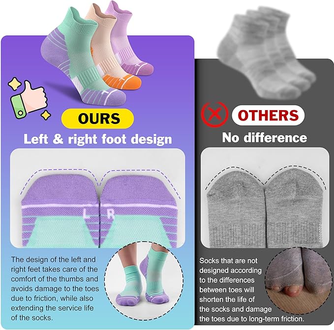 Gonii Women's Compression Ankle Socks with Cushion & Arch Support| Lightweight & Moisture-Wicking for Running 3 Pairs