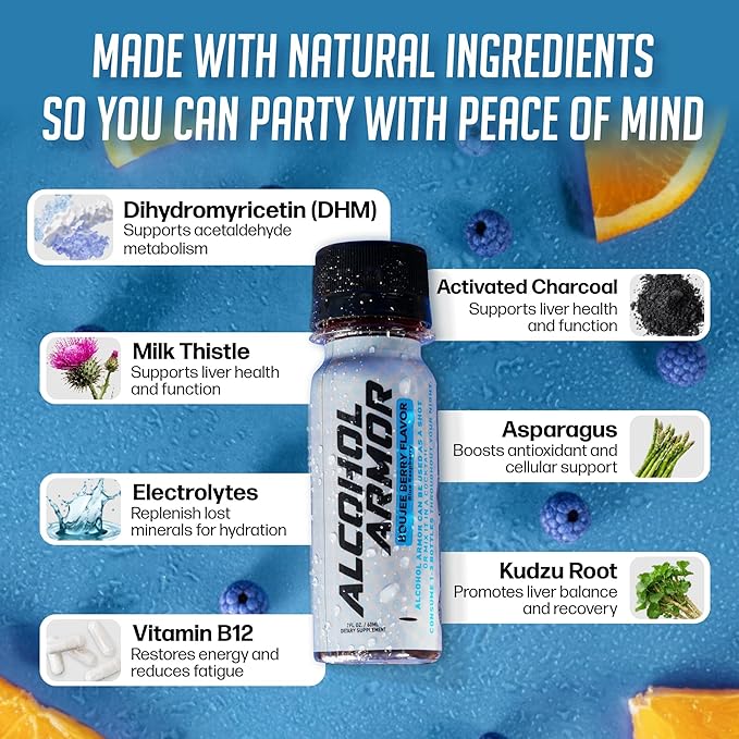 - EASY TO USE: Simply enjoy a 2oz serving of Alcohol Armor to hydrate, detoxify your liver, and fortify your body before dehydration and fatigue set in.