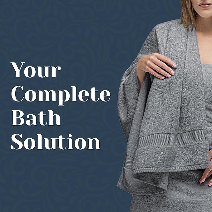 White Classic Luxury Bath Towel Set of 8 Pieces - 100% Turkish Cotton Highly Absorbent Towels for Bathroom, 2 Luxury Bath Towels 700GSM, 2 Hand Towels, 4 Washcloths, Dolphin Gray