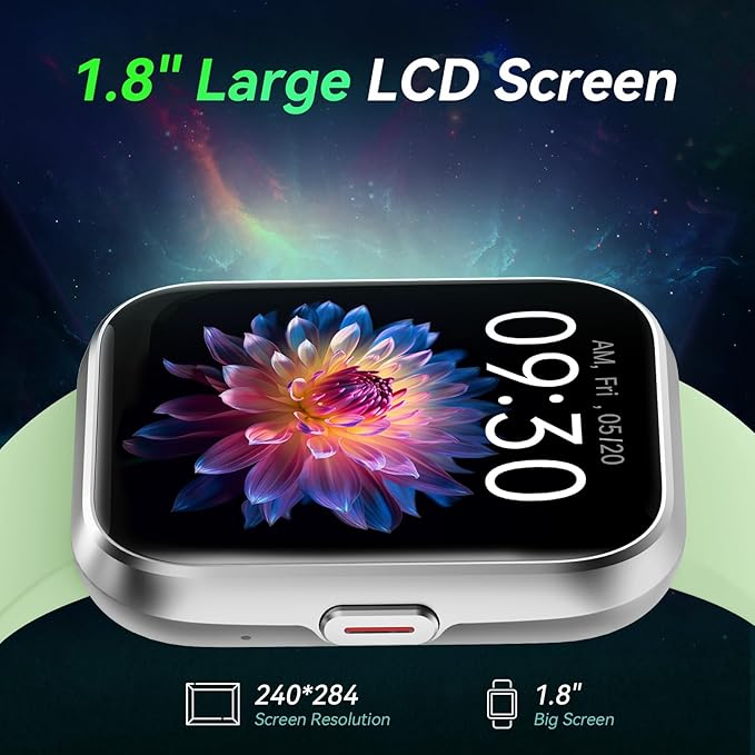- 【1.8'' HD Screen & Customized Watch Faces】Features 1.8-inch TFT-LCD colorful screen with highly responsive touch sensitivity. It provides over 120 watch faces for you to choose to match your style. You can also personalize further by selecting your favorite photo as the watch face.