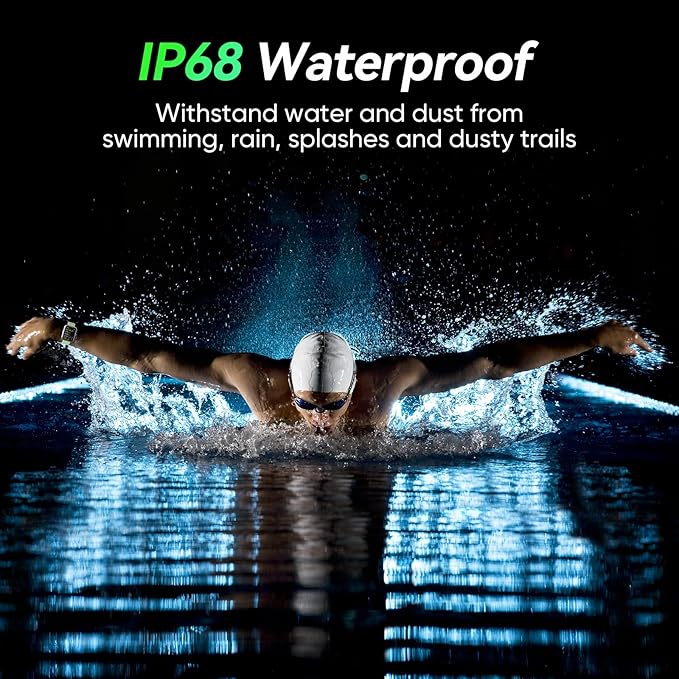 - Special Feature : Bluetooth Call Make/Answer, Work with Alexa, Activity Tracker, IP68 Waterproof, Heart Rate/SpO2/Sleep/Stress Monitor, 110+ Sports Modes, Pedometer/Calories/Distance Record, Alarm Clock, Message Notification, Music Control, Screen on Time, Adjustable Brightness, Raise to Wake, DND Model and so on Bluetooth Call Make/Answer, Work with Alexa, Activity Tracker, IP68 Waterproof, Heart Rate/SpO2/Sleep/Stress Monitor, 110+ Sports Modes, Pedometer/Calories/Distance… See more