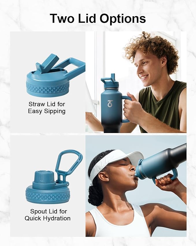 - Leak-Proof Assurance: Trebo insulated water cup comes equipped with two functional lids: a straw lid and a spout lid. The silicone ring on each lid guarantees a 100% leak-proof and spill-proof experience.You can take the reusable water flask anywhere.