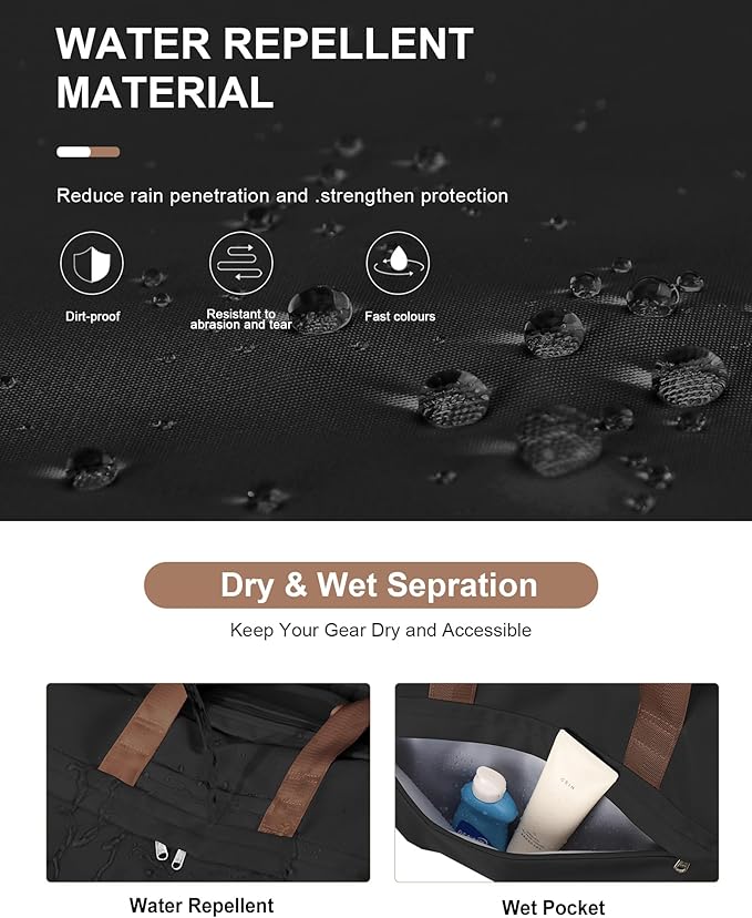- 【Waterproof & Dry Wet Pocket】The bag is made from high-density waterproof material to repel water and keep the contents inside dry. The bag has a compartment designed specifically for separating dry items from wet ones like wet clothes or towels