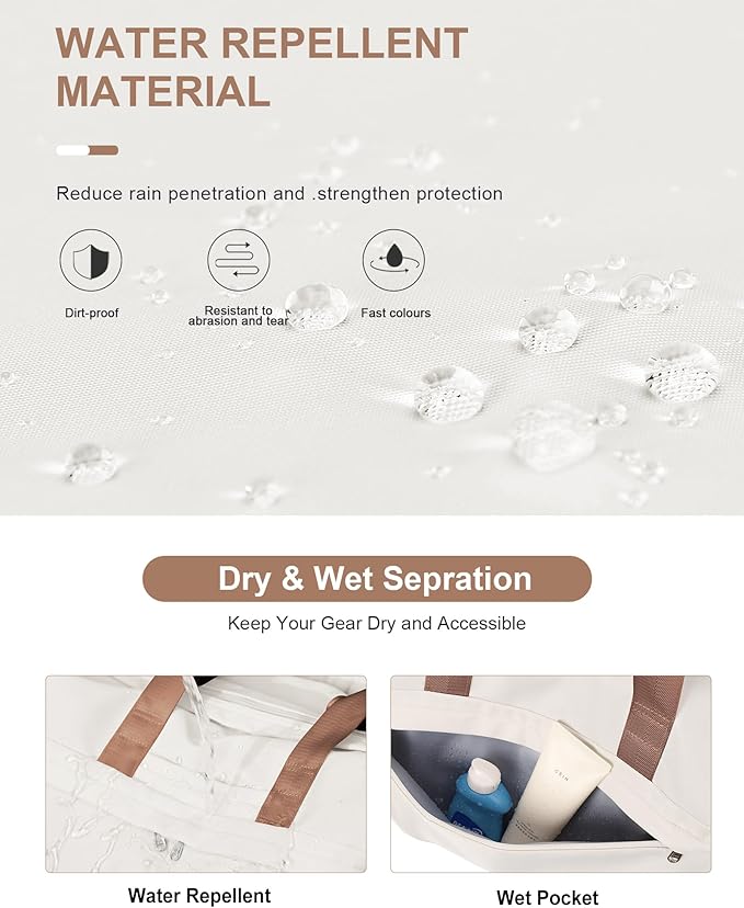 - 【Waterproof & Dry Wet Pocket】The bag is made from high-density waterproof material to repel water and keep the contents inside dry. The bag has a compartment designed specifically for separating dry items from wet ones like wet clothes or towels