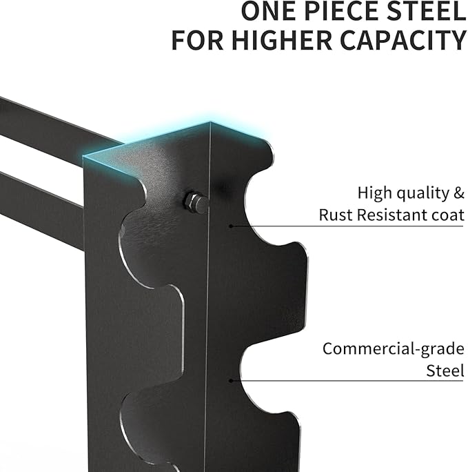 - ✓ Extra Long Feet for Stability:Long steel tube base keep the rack very steady. No wobble even loaded with many heavy dumbbells. Higher stability and safety than others