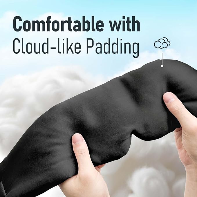 - Featherweight Comfort: Experience the gentle embrace of this soft blindfold, resembling a silky caress that contours to your face effortlessly, applying no pressure at all. It's akin to slumbering on a cloud, making it ideal for side sleepers and those who frequently toss and turn. Weighing merely 1.48 oz, this padded eye mask aids in alleviating stress around the temples and reducing eye fatigue, without leaving any marks on your forehead