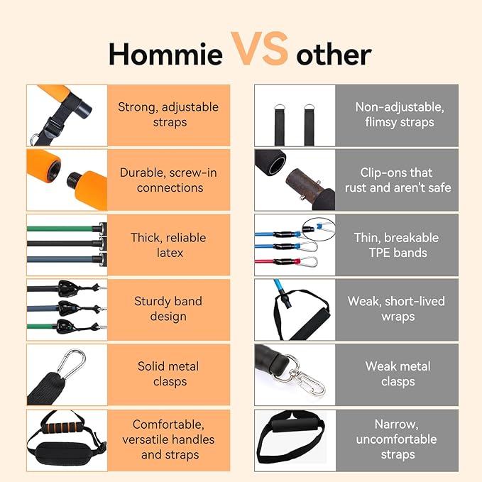 Hommie Portable Pilates Bar Kit with Resistance Bands for Men and Women,Upgraded 3 Section Pilates Bar with Resistance Bands (20-60lb) for Home Gym Equipment Supports Full-Body