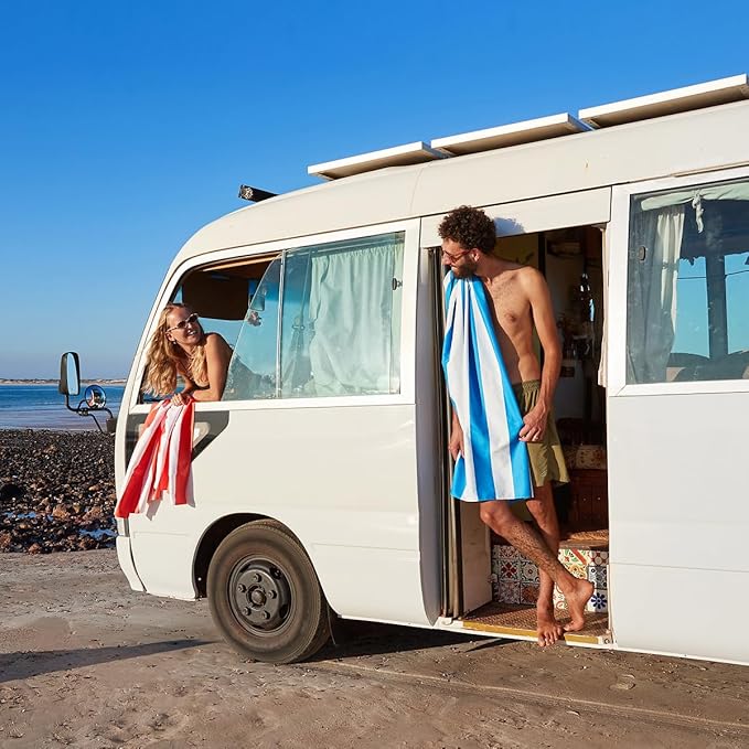 - QUICK DRYING & SUPER ABSORBENT - The fibres will soak up all water and moisture off of you in no time leaving you dry and ready to go. Our beach towel dries 3x faster than standard cotton towels and will keep free of unpleasant damp smells