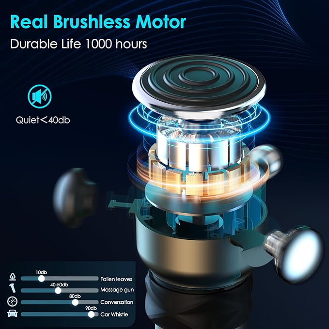 - 【Long-lasting Battery and Durable Performance】Equipped with a 2900mAh battery and a real brushless motor, our massager ensures a continuous and powerful vibrating experience. You can rely on its long-lasting performance to deliver consistent muscle pain relief whenever you need it.