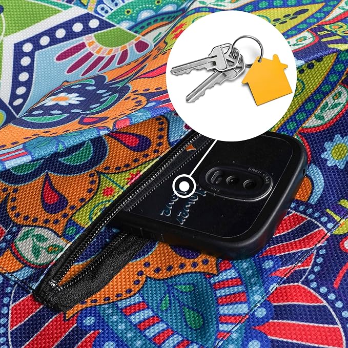 - Storage: The top is 15.5 inches wide,so you can store other yoga equipment and accessories like your yoga block,yoga strap,yoga mat towels,bath towels,sandals,or even a change of clothes after working out! Two Pockets Design: one large side pocket for water bottle,face towel and sunglasses. And one small interior zipper pocket for keys,wallet,cards and phone. It's not enough to have a yoga bags that? just"long enough". Because it ALSO needs to have enough storage AND vibrate with your persona.
