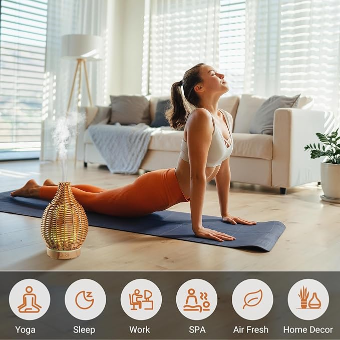 - Rattan Weaving Craft: Hand-crafted with care, our aromatherapy diffuser imitates beautifully woven rattan for a rustic yet elegant touch to your home or office décor.