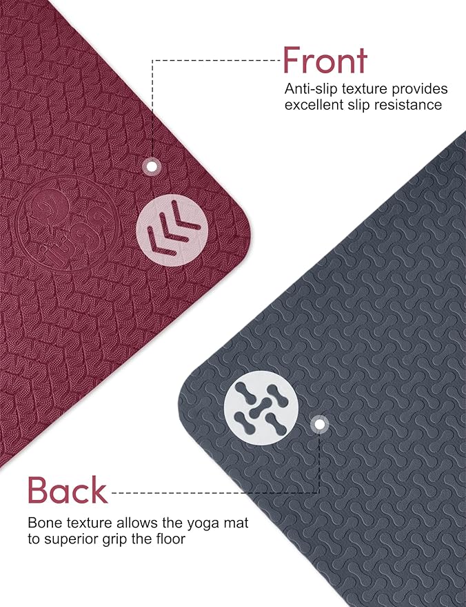 - Double-Sided Grippy not Slippy: IUGA yoga mat textured top prevents feet slippage, while the unique 'Bone' pattern underside keeps it firmly in place—for confident poses in any intensity practice