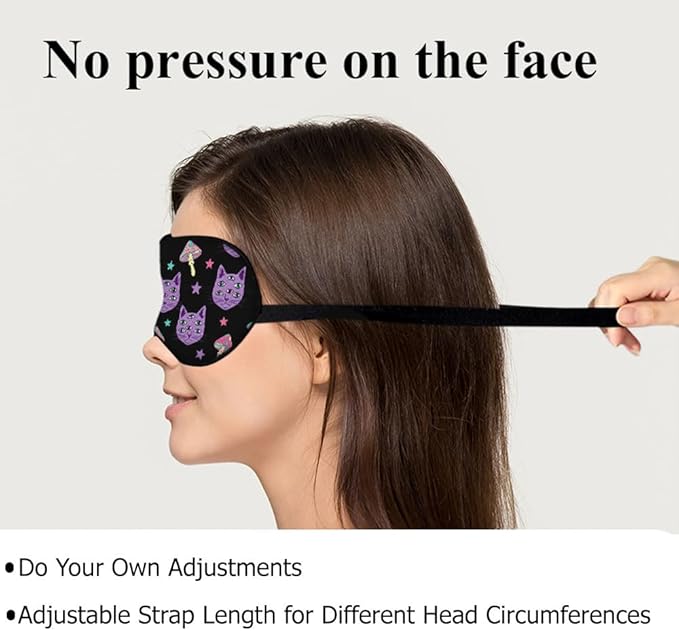 - 【Product Size】: Cat Mushrooms silk sleep mask measures 8.2" x 4.3" with modified adjustable buckle. The elastic straps is light and easy to adjust suitable for most men and women, ensuring a snug fit.