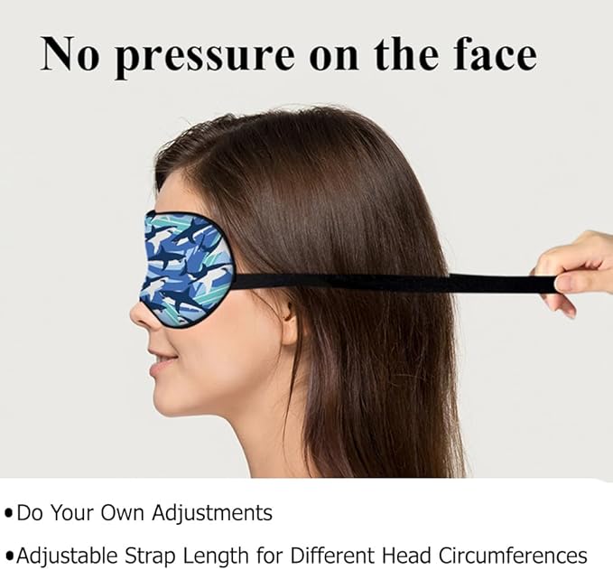- 【Product Size】: Blue Sharks silk sleep mask measures 8.2" x 4.3" with modified adjustable buckle. The elastic straps is light and easy to adjust suitable for most men and women, ensuring a snug fit.