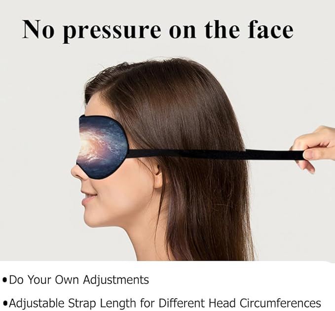 - 【Product Size】: Space Galaxy silk sleep mask measures 8.2" x 4.3" with modified adjustable buckle. The elastic straps is light and easy to adjust suitable for most men and women, ensuring a snug fit.