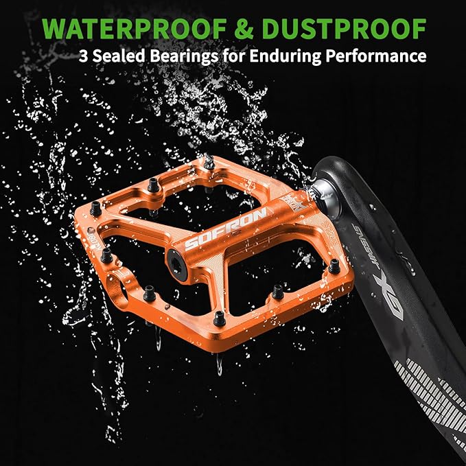 - Waterproof & Dustproof: No need to worry about rainy rides or dusty trails, as these mtb pedals are built to keep out moisture and debris with sealed bearings