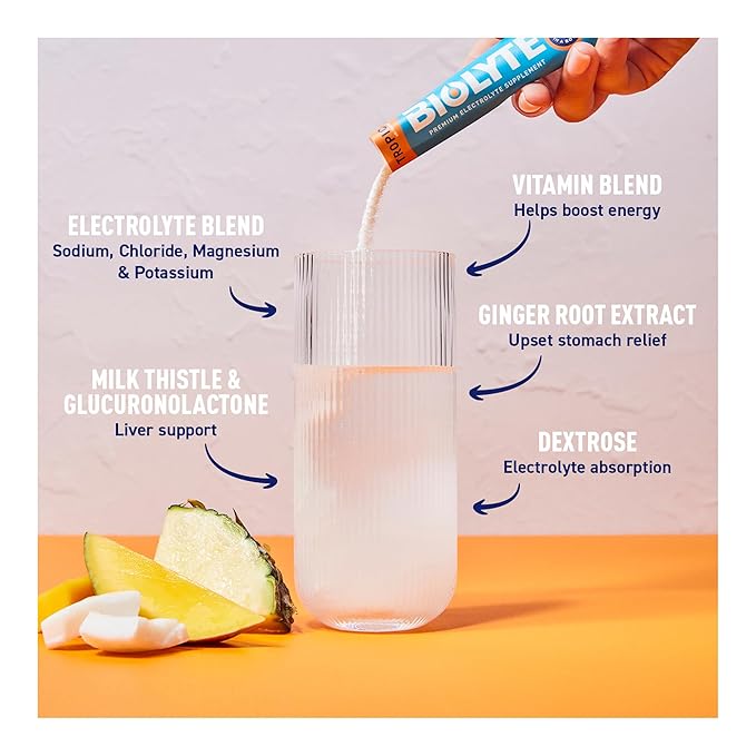 BIOLYTE IV Electrolyte Powder Packets, IV Liquid Drink Mix for Water, Doctor-Developed Hydration, HSA & FSA Approved Dehydration Relief, Chemotherapy Must Haves for Women & Men - Tropical (16 Sticks)
