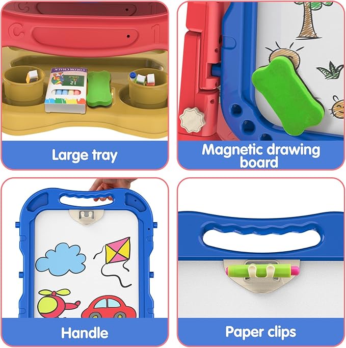 - Multi-use Easel For Toddler: To inspire painting, drawing, and countless ways to play creatively and strengthen fine motor skills, imagination, concentration, communication, spatial & visual awareness and lots more.It is the best gift for children, and the best product to accompany children to grow up and educational.