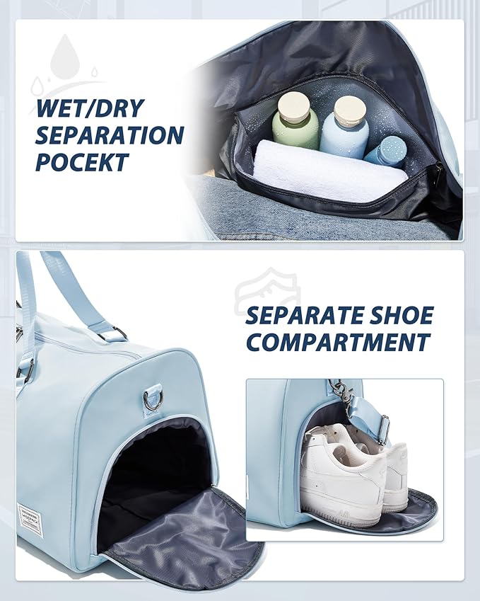 - Dry Wet Separated Duffle Bag: The travel duffle bags is made of high-density waterproof material and has an internal wet/dry separator pocket to help you separate wet and dry items, if you have wet clothes or towels, you can put them into the compatible bag that comes with it to keep other items dry. It can be used as a tactical bag, yoga bag, gym bag, travel bag, workout bag, sports bag, gym bag for men and women