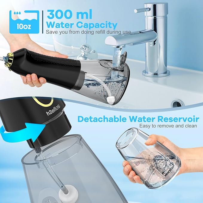 - 【Deep and Gentle Teeth Cleaning for Improved Gum Health】Enhanced with optimal pulsations and higher pressure, the latest h2ofloss water flosser delivers a powerful water flow that removes 99.99% of stains without harming the gums. With 1300 pulsations per minute, it gently massages the gums, promotes blood circulation, and cleans teeth 5 times more effectively than traditional floss picks