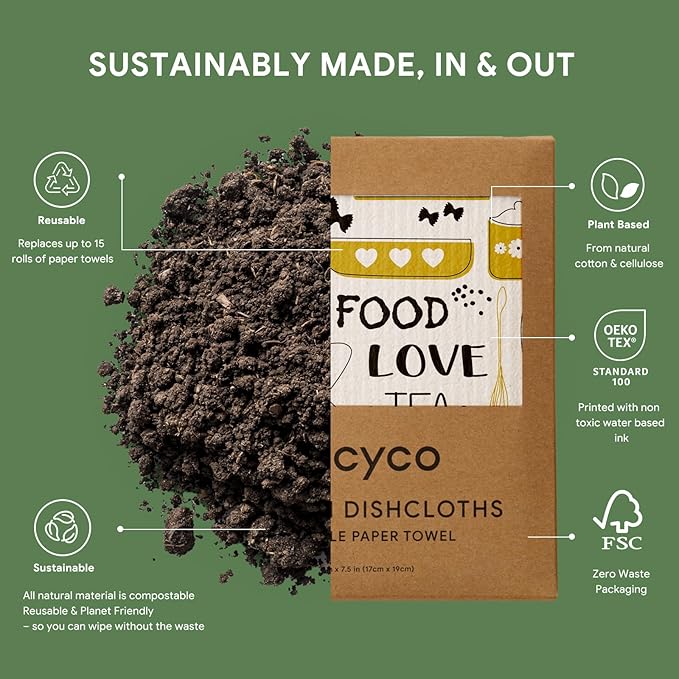 - Plant-Based & Biodegradable: Our 8” x 7” swedish dishcloth is 100% biodegradable, vegan, and free from harmful chemicals. Made from FSC certified cellulose and cotton fibers, it can decompose naturally in just 6-8 weeks, making it your best conscious choice for a greener lifestyle.