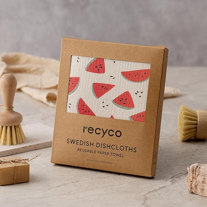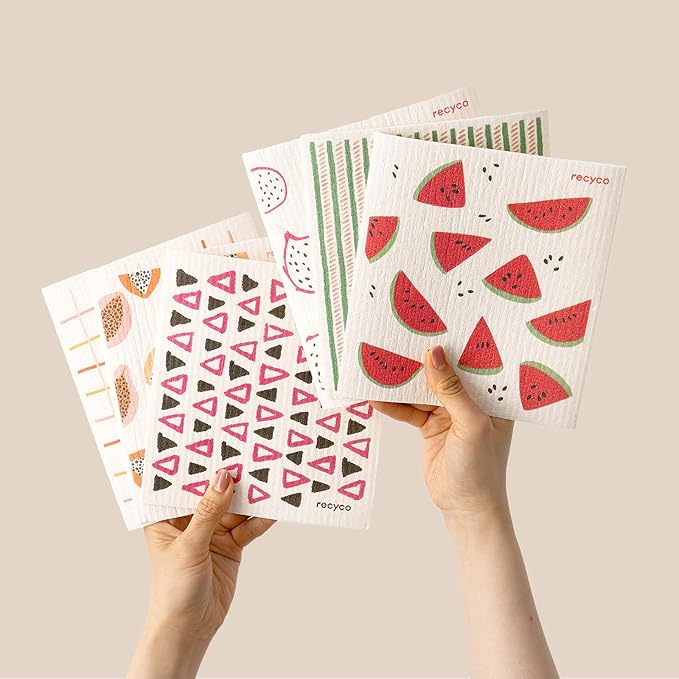 RECYCO Swedish Dishcloths for Kitchen | 6 Pack Tropical Fruit Washable Dish Rags | Cellulose Reusable Cleaning Paper Towels | Absorbent Counter Dish Cloth Sponge Kitchen Wipes, 8" L x 7" W