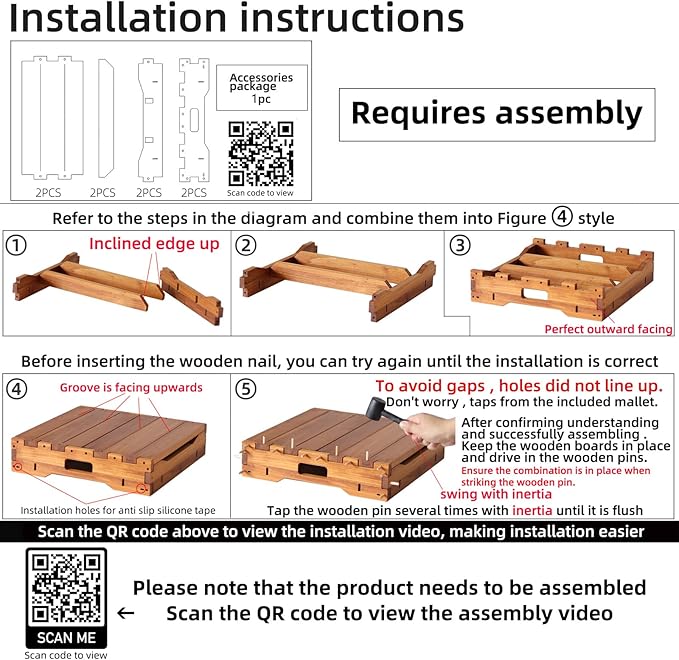 - 【Safety First】Utilizing the characteristics of solid wood grain, the footstool designed with horizontal surround support will not split longitudinally, and the footstool will not suddenly collapse. Unlike products fixed with simple screws that gradually loosen, our step stool with four corner mortise and tenon cross fixation can continuously maintain stability and safety.