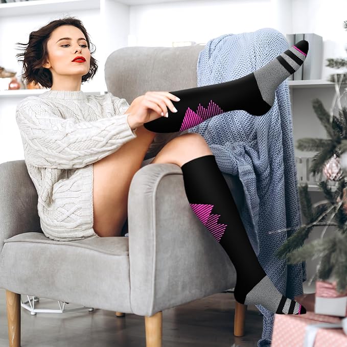 - 6 PACK OF COMPRESSION SOCKS - You no longer have to settle.Our design of comfort and style comes at a very affordable price in comparison.There are available in different fabrics and colors.They are discreet and look like the ordinary socks you have already wear to work.Our socks are universally suitable for all work.Whether you are an athlete,teacher,flight,crew,receptionist,office,worker,pregnant, elderly ,they'll work for you as you work for yourself and your family.