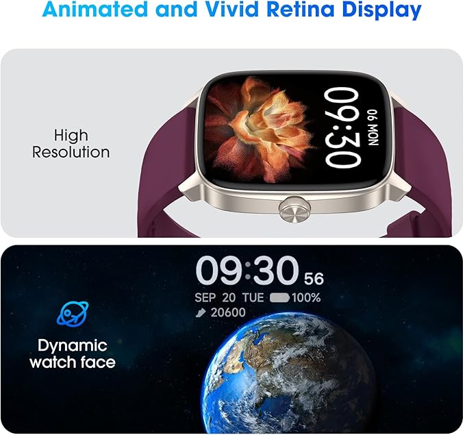 - Large Clear Display & Customizable Watch Dials: This smartwatch features a large LCD color display, more clear to view and easier to operate on watch, especially friendly for both elderly! There are 5 built-in dials available without App. If paired with APP, there are cloud watch faces and customize exclusive dials.