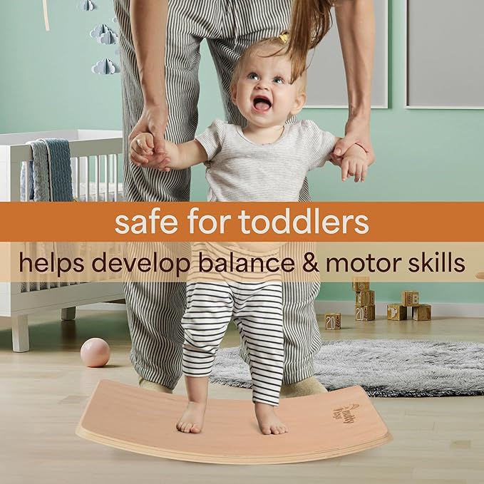 - πͺ SUPERIOR & HIGH QUALITY - The balance board is made entirely out of NATURAL WOOD giving it increased resistance and holding up to 488 lbs, so hop on the board together with your little one, there's room for both - NON-TOXIC COATING ensures the wood stays well protected as well as your and your children's health - professional craftsmanship not only gives this unique toy a very desirable look but also ensures ALL EDGES ARE CHILD SAFE and free of splinters;