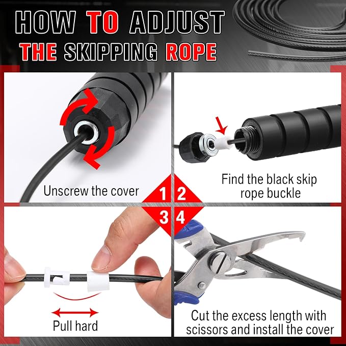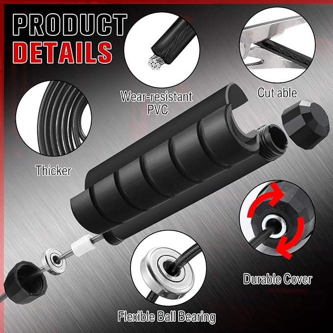 - Lightweight and Sturdy: our jump ropes are made of thickened braided steel wire with PVC coating, easy to use and smooth, ensuring your safety and convenience and avoid cracking or breaking; The handle is covered with soft foam to make the handle comfortable to hold