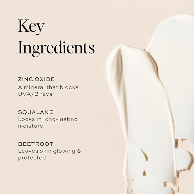 - TINTED SPF IN 3 FLEXIBLE SHADES: Powered by 19% zinc (that’s a lot of protection), this clean mineral sunscreen and face moisturizer is available in 3 flexible shades, compatible with nearly every complexion. Packed with squalane and beetroot, this skin tint and zinc oxide sunscreen leaves skin glowing.